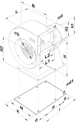 Трифазен четириполюсен центробежен вентилатор Vents серия VCUN с извит метален корпус тип "охлюв" и капацитет до 6530 m3/h
