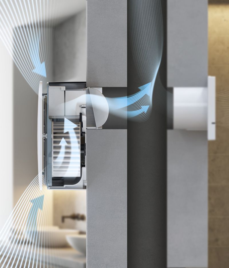 - Високата степен на водозащита IP45 позволява инсталирането на вентилатора в помещения с висока влажност.