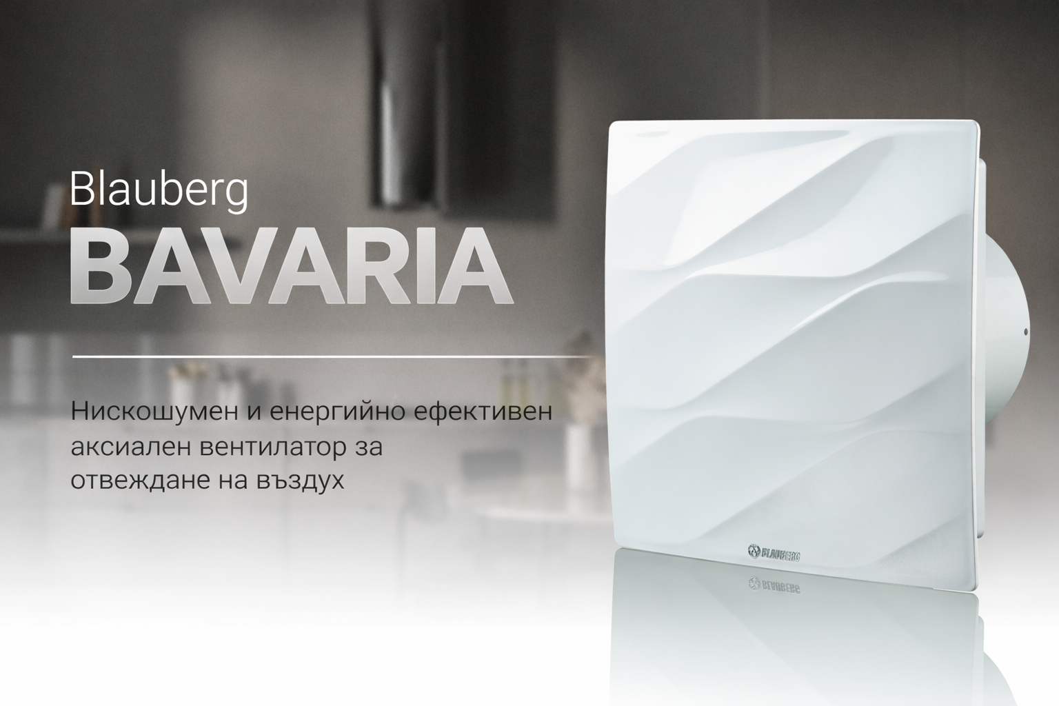 - Аксиалният вентилатор Blauberg Bavaria е разработен за ефективна работа в жилищни смукателни системи и е подходящ за помещения с нормална и повишена влажност – бани, кухни и сервизни помещения.